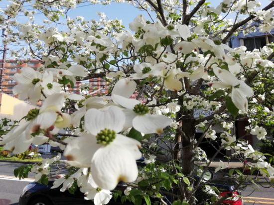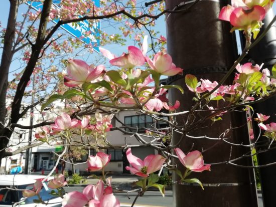 桜が散ったあと、私たち歩行者の目を楽しませてくれています。